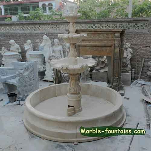 This Contemporary water fountains is made by beige marble, it's classic three tier marble fountain with flower shape water basin and marble round pool surround. We also could make it a pedesatl contemporary water fountains , the pond is optional.