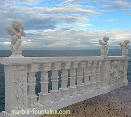 White Marble Balusters with cherub sculpture on top.All Hand Carved Sculpture marble balusters. Customized Size and Color according to your garden style and drawing. Chinese Factory Price Free Shipping directly to your home address. email us to get catalogue