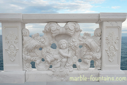 Marble Railing: This marble railing is made by natural white marble,to make the marble railing fast and precisely, we imported caring machine only for marble railing products, hence we could make large quantity in short time. The sculpture on the marble railing is different, to make sure the sculpture is perfect, we need to hand carve it.